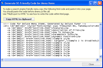 User's GuideGenerate Search Engine Friendly Code |